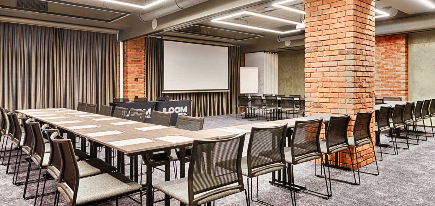 Nowoczesne sale konferencyjne Hotelu The Loom to idealna przestrzeń do organizacji konferencji, szkoleń, spotkań biznesowych i eventów firmowych w centrum Łodzi. Oferujemy elastyczne powierzchnie konferencyjne, profesjonalne zaplecze techniczne oraz kompleksową obsługę wydarzeń — wszystko w wyjątkowym, loftowym klimacie inspirowanym industrialną historią miasta.